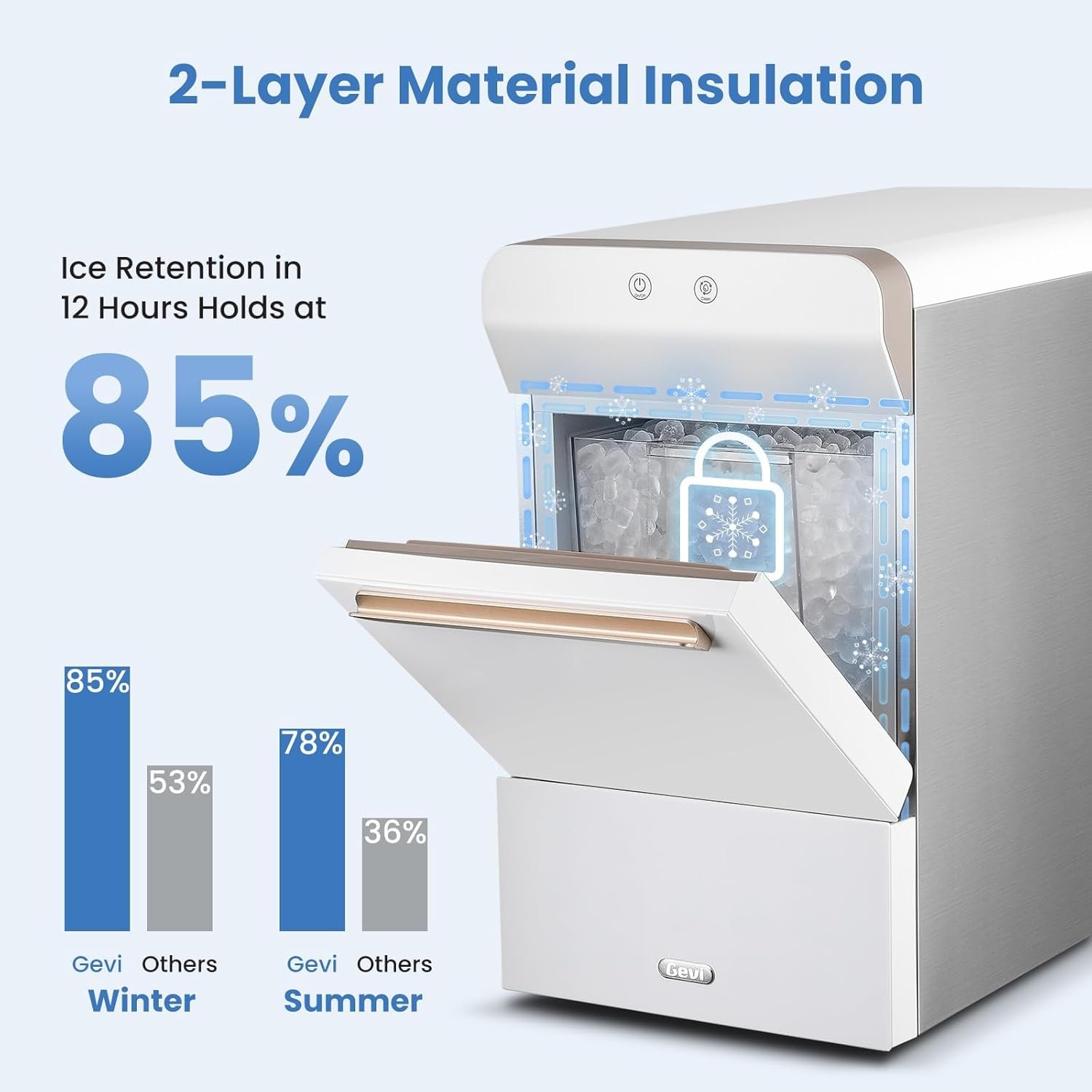 𝐃𝐨𝐮𝐛𝐥𝐞-𝐋𝐚𝐲𝐞𝐫 𝐌𝐚𝐭𝐞𝐫𝐢𝐚𝐥 𝐈𝐧𝐬𝐮𝐥𝐚𝐭𝐢𝐨𝐧-เครื่องทำน้ำแข็ง Gevi มาพร้อมฉนวนกันความร้อนวัสดุ 2 ชั้นขั้นสูง ที่สามารถเก็บน้ำแข็งไว้ได้นานถึง 12 ชั่วโมง โดยคงอุณหภูมิได้ถึง 85% ของความเย็นเดิม ฉนวนประสิทธิภาพสูงนี้ช่วยให้น้ำแข็งของคุณเย็นได้นานยิ่งขึ้น แม้อยู่ในสภาพแวดล้อมที่ร้อน