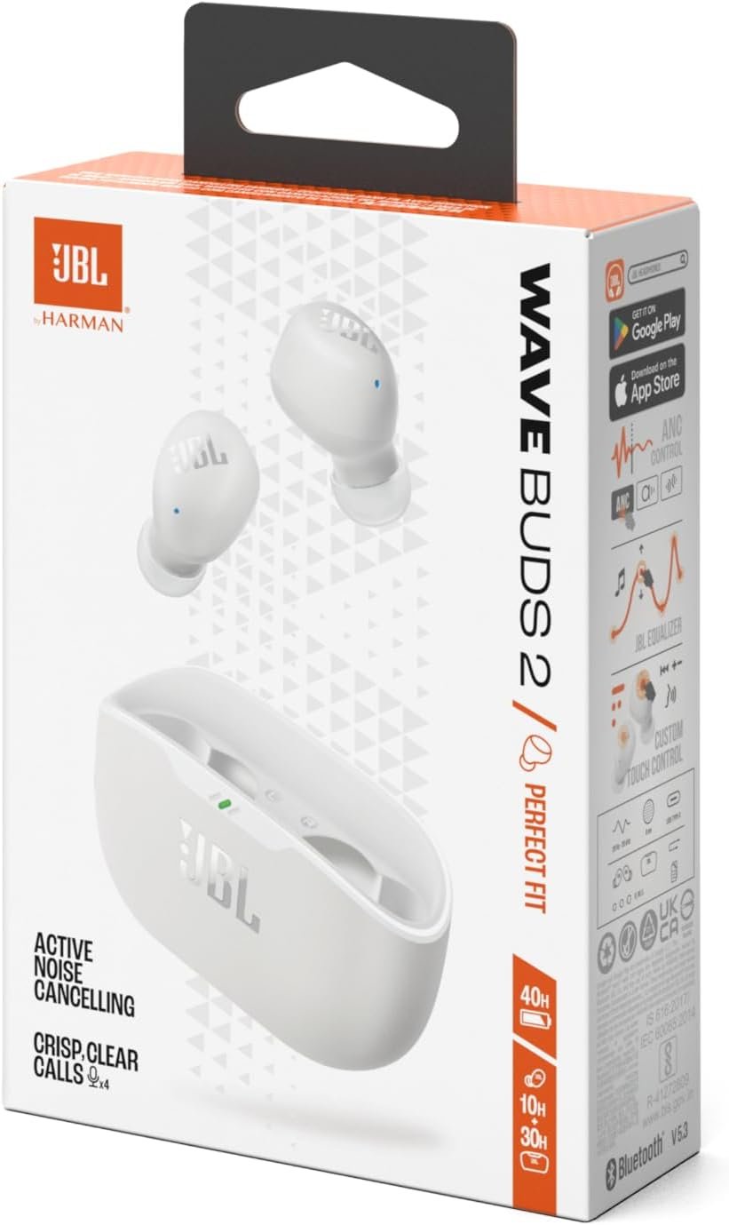 While Stocks Last:JBL Wave Buds 2, Wireless Noise Cancelling Bluetooth Earbuds with 40 Hours Playtime, JBL Pure Bass Sound, Smart Ambient Technology, IP54 Water and Dust Resistant, Multi-Point Connection