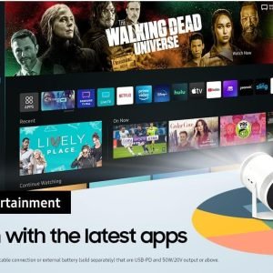 While Stocks Last:SAMSUNG 30″ – 100″ The Freestyle FHD HDR Smart Portable Projector for Indoor and Outdoor Home Theater, Big Screen Experience with Premium 360 Sound w/ Alexa Built-In (SP-LSP3BLAXZA)